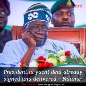 Ndume said, “We queried the amount budgeted for the yacht, but it was signed for a dollar rate, and the new rate isn’t favourable. The budget was predicated for about N435, and now it is over N800.